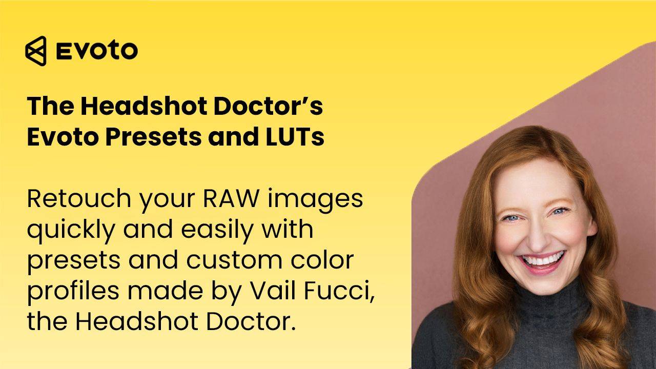These Evoto presets developed by the Headshot Doctor, Vail Fucci, will ensure that your images look professional instead of plastic. Skin will still look like skin. Â